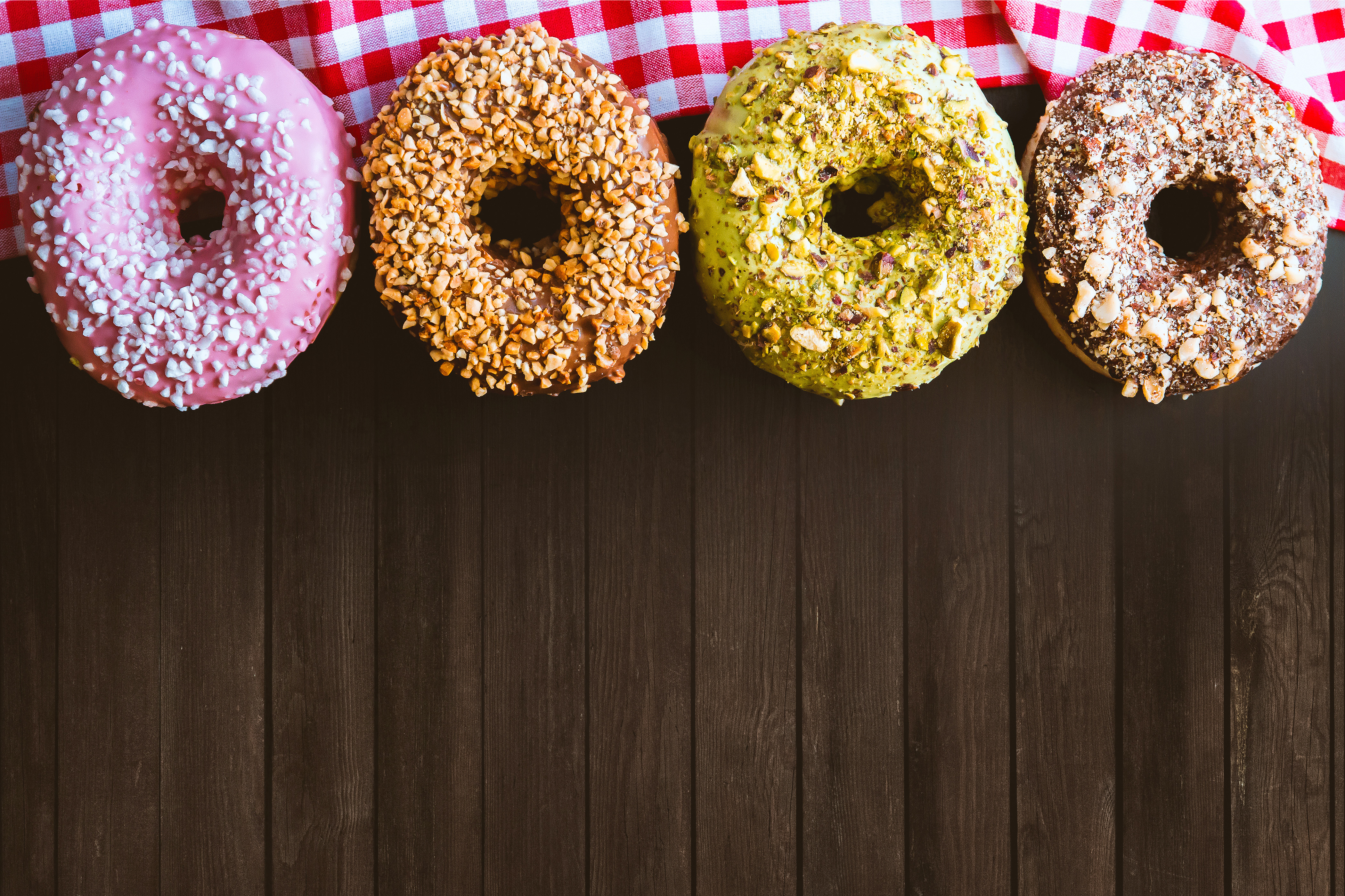 Thank you for respecting the following rules. "Four fantastic American donuts on a wooden table" is totally free stock photo. This JESHOOTS License gives you the right to use products ("Images") obtained from https://www.jeshoots.com/ ("Site") in a personal or commercial project for yourself or for a client.